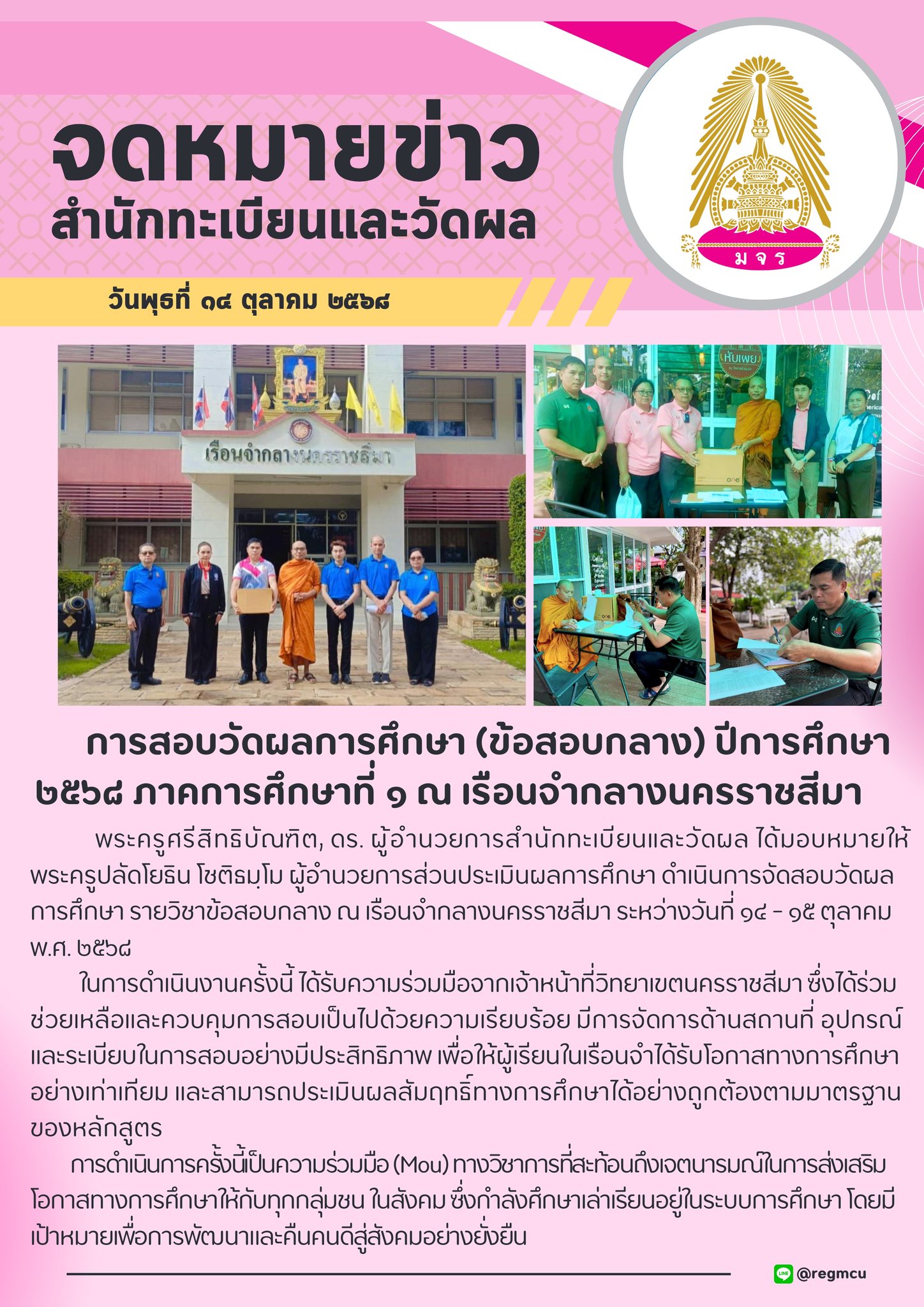 การสอบวัดผลการศึกษา (ข้อสอบกลาง) ปีการศึกษา ๒๕๖๘ ภาคการศึกษาที่ ๑