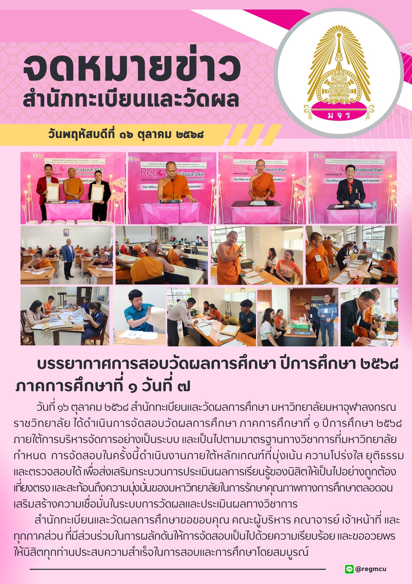 บรรยากาศการสอบวัดผลการศึกษา ปีการศึกษา ๒๕๖๘ ภาคการศึกษาที่ ๑