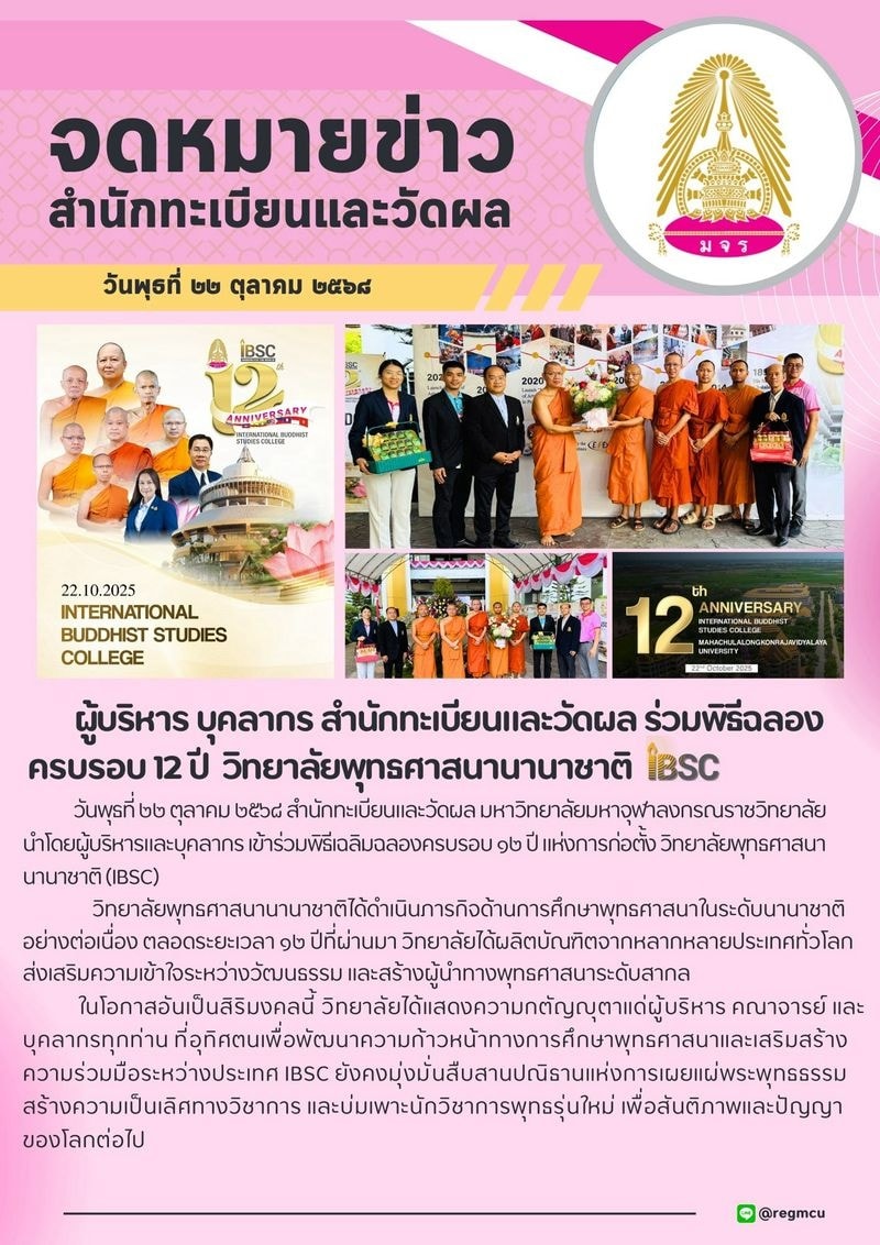 ผู้บริหารและบุคลากร สำนักทะเบียนและวัดผล ร่วมพิธีฉลองครบรอบ 12 ปี วิทยาลัยพุทธศาสนานานาชาติ (IBSC)