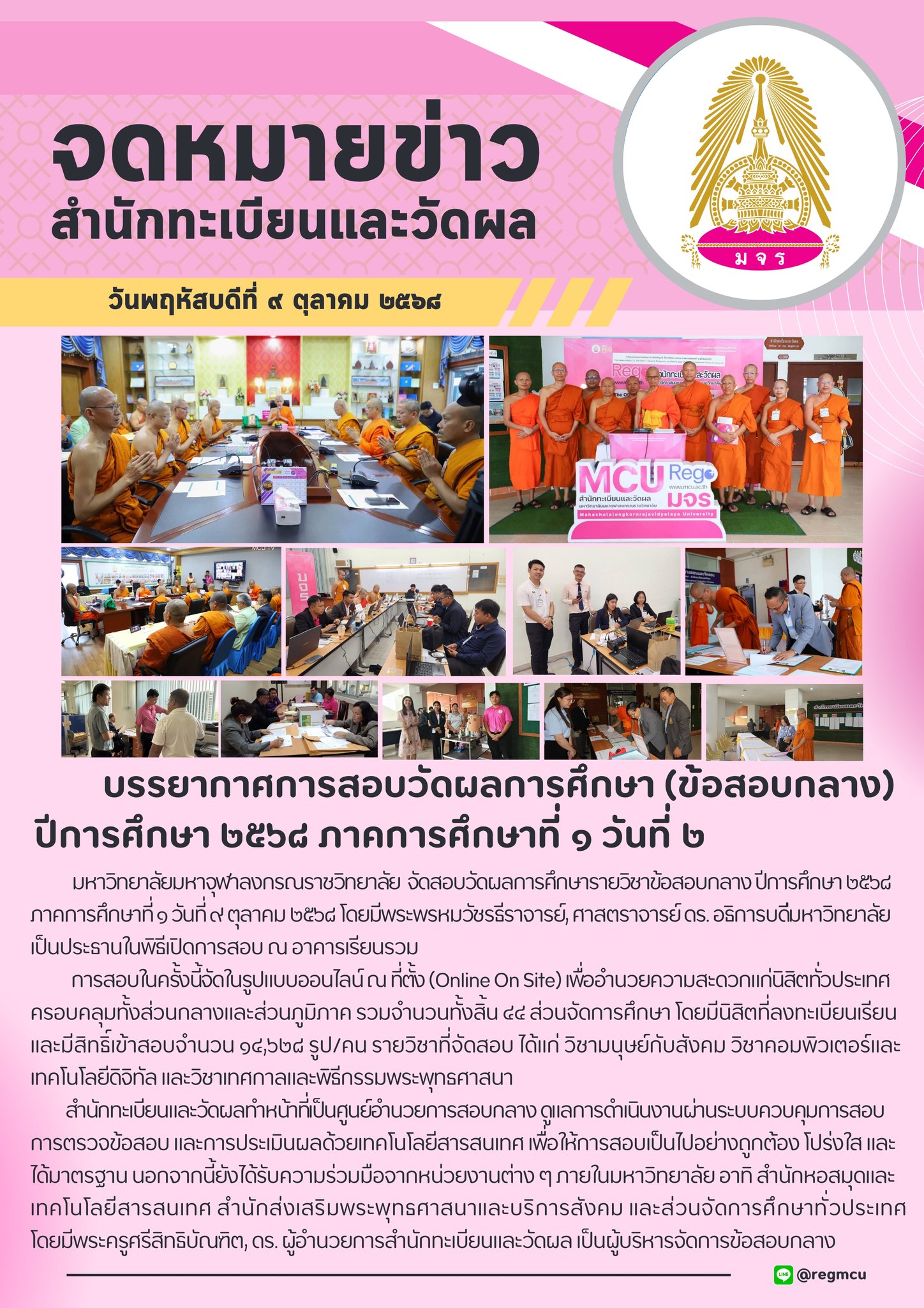 จัดสอบวัดผลการศึกษารายวิชาข้อสอบกลาง ปีการศึกษา ๒๕๖๘ ภาคการศึกษาที่ ๑