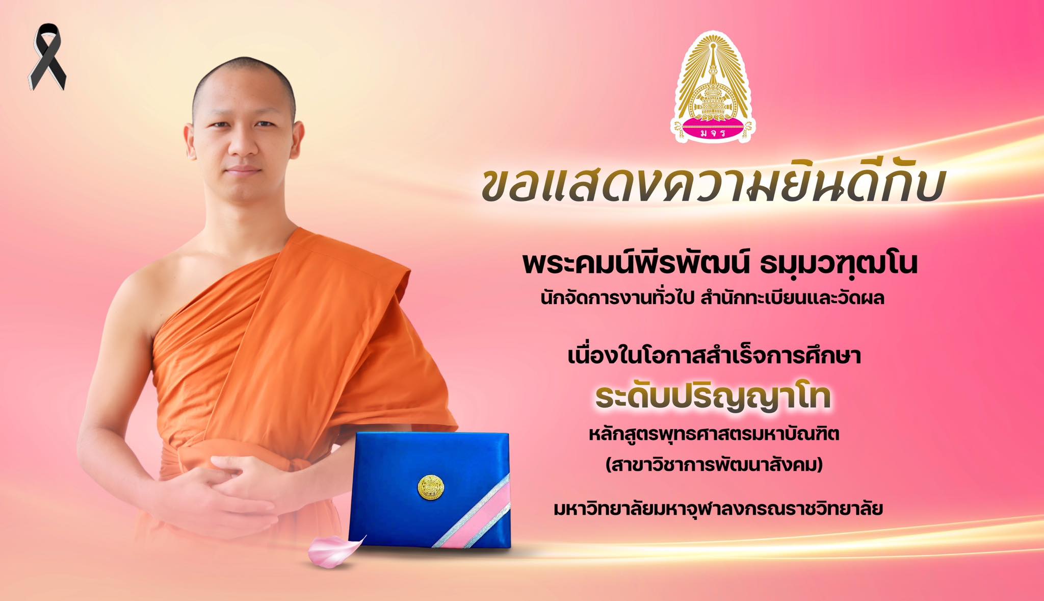 ส่วนทะเบียนนิสิต มหาวิทยาลัยมหาจุฬาลงกรณราชวิทยาลัย ขอแสดงความยินดีผู้อำนวยการส่วนทะเบียนนิสิตและเจ้าหน้าที่ ในโอกาสสำเร็จการศึกษา