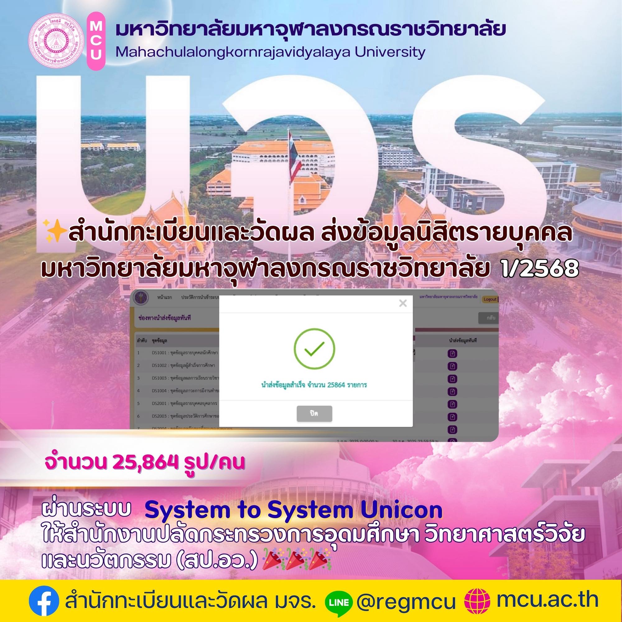 The Office of Registration and Evaluation, Mahachulalongkornrajavidyalaya University (MCU), has successfully submitted individual student data for Semester 1/2025 to the Office of the Permanent Secretary, Ministry of Higher Education, Science, Research and Innovation (MHESI).