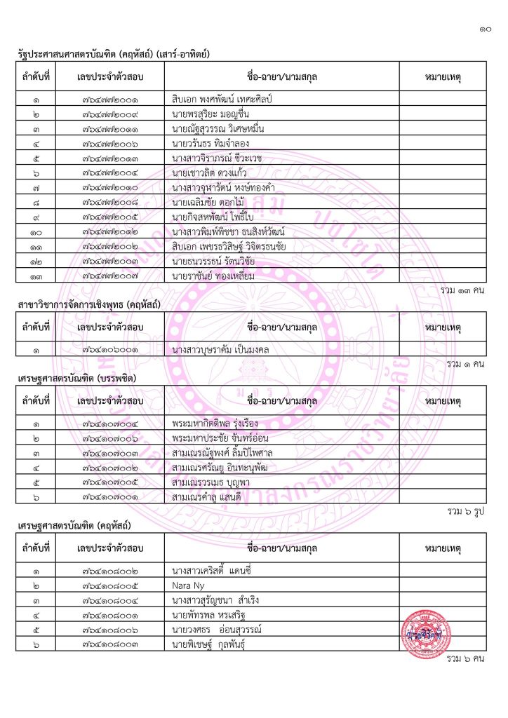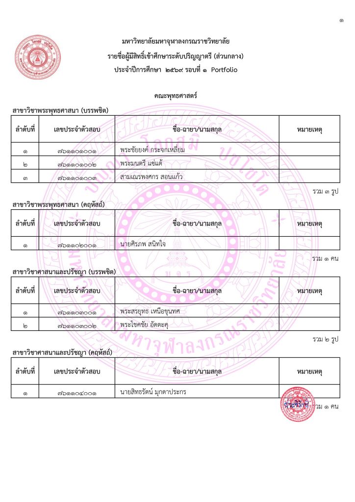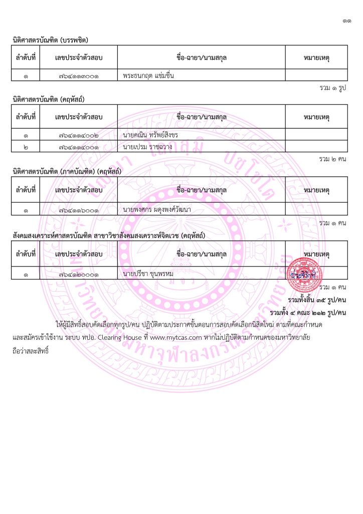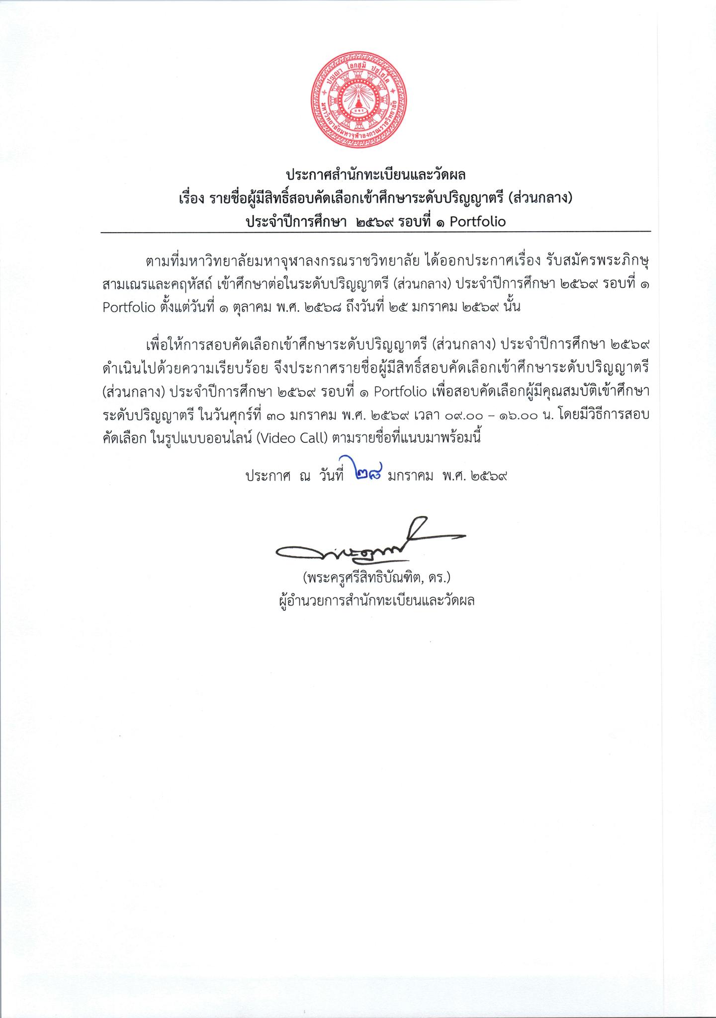 ประกาศ รายชื่อผู้มีสิทธิ์สอบคัดเลือกเข้าศึกษาระดับปริญญาตรี (ส่วนกลาง)