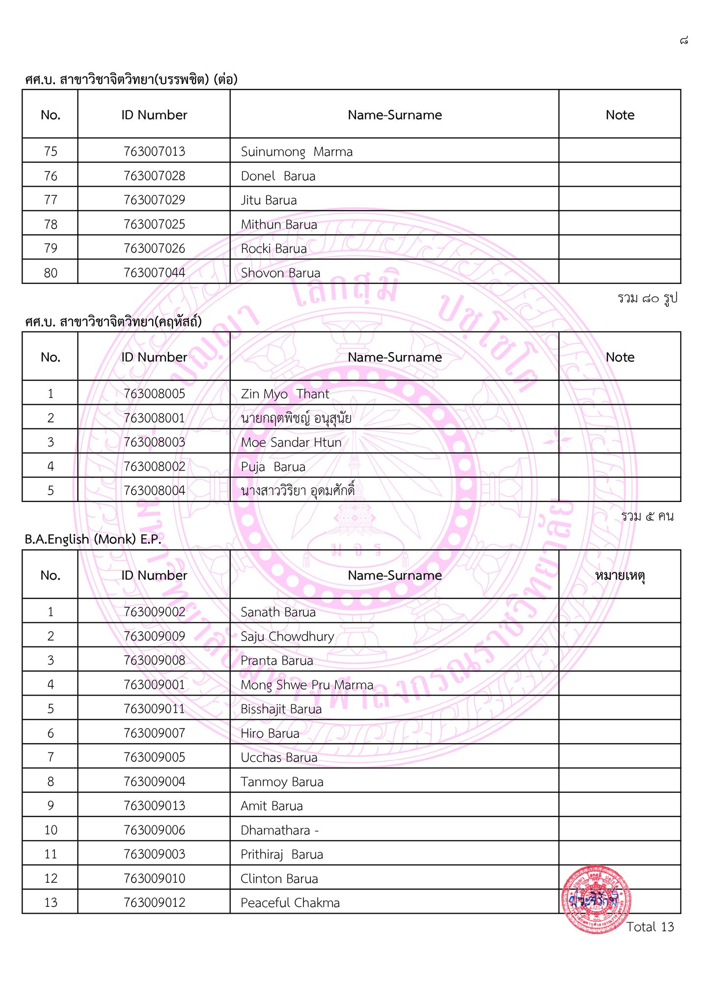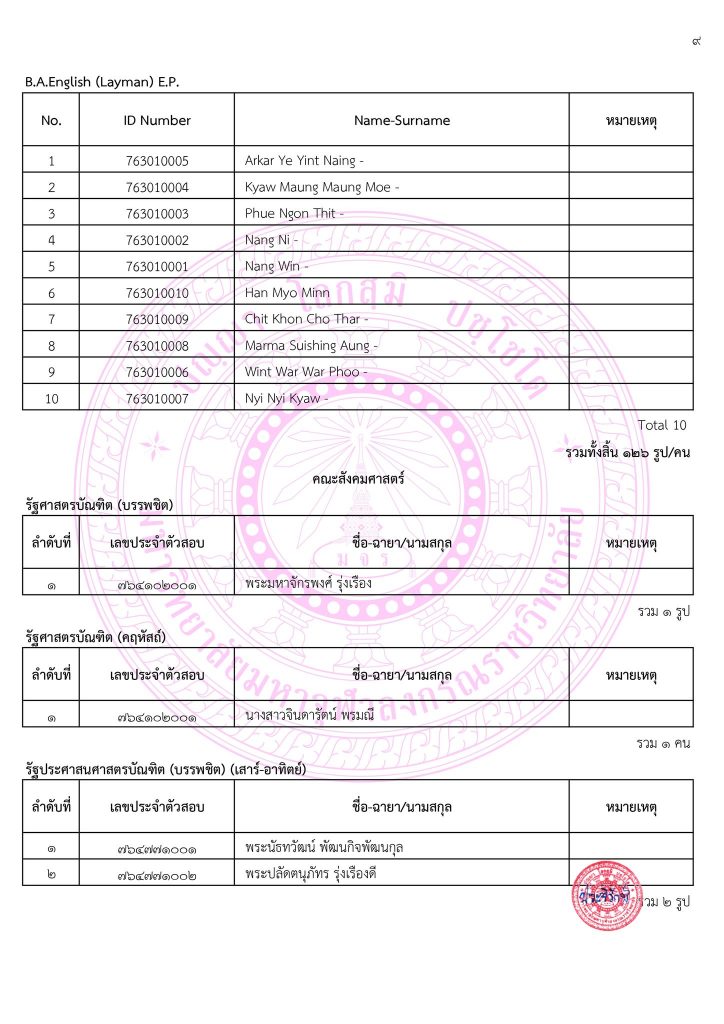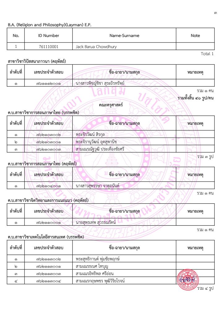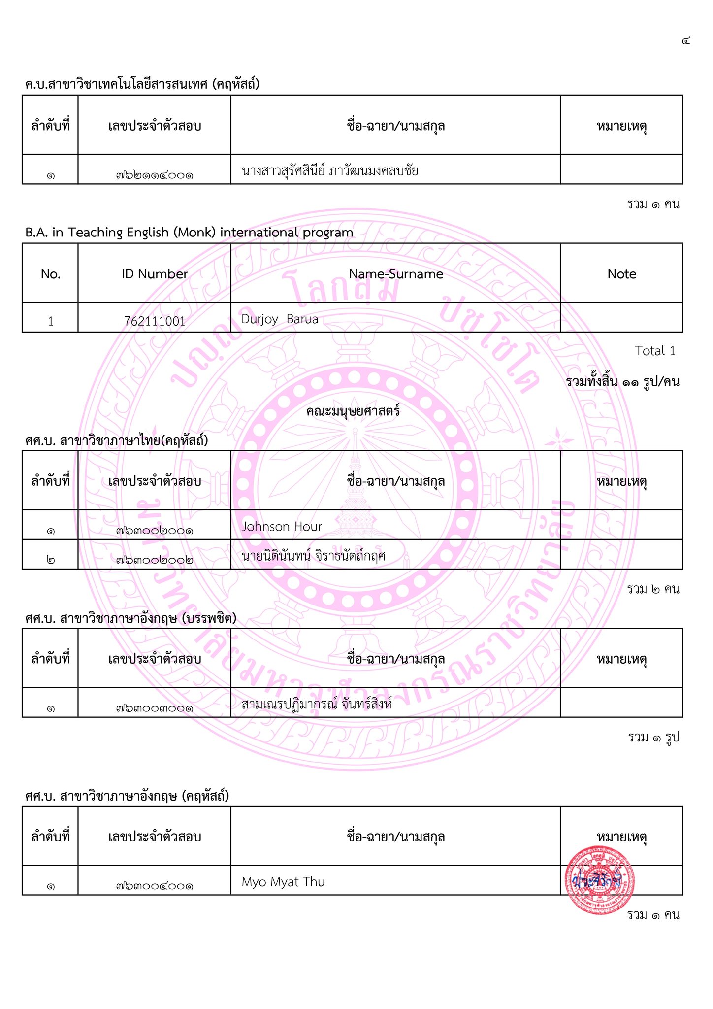 ประกาศ รายชื่อผู้มีสิทธิ์สอบคัดเลือกเข้าศึกษาระดับปริญญาตรี (ส่วนกลาง)