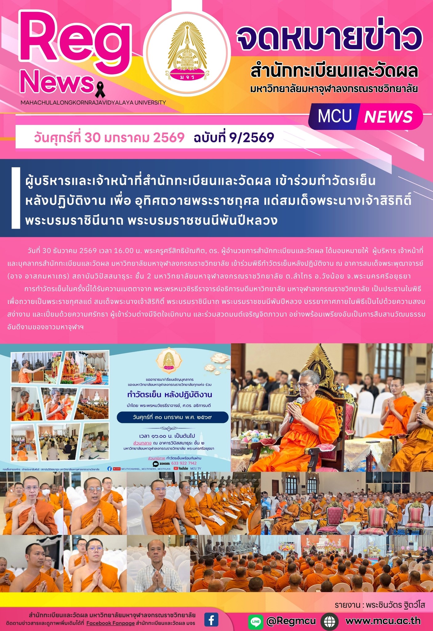 ผู้บริหารและเจ้าหน้าที่สำนักทะเบียนและวัดผล เข้าร่วมพิธีทำวัตรเย็นหลังปฏิบัติงาน