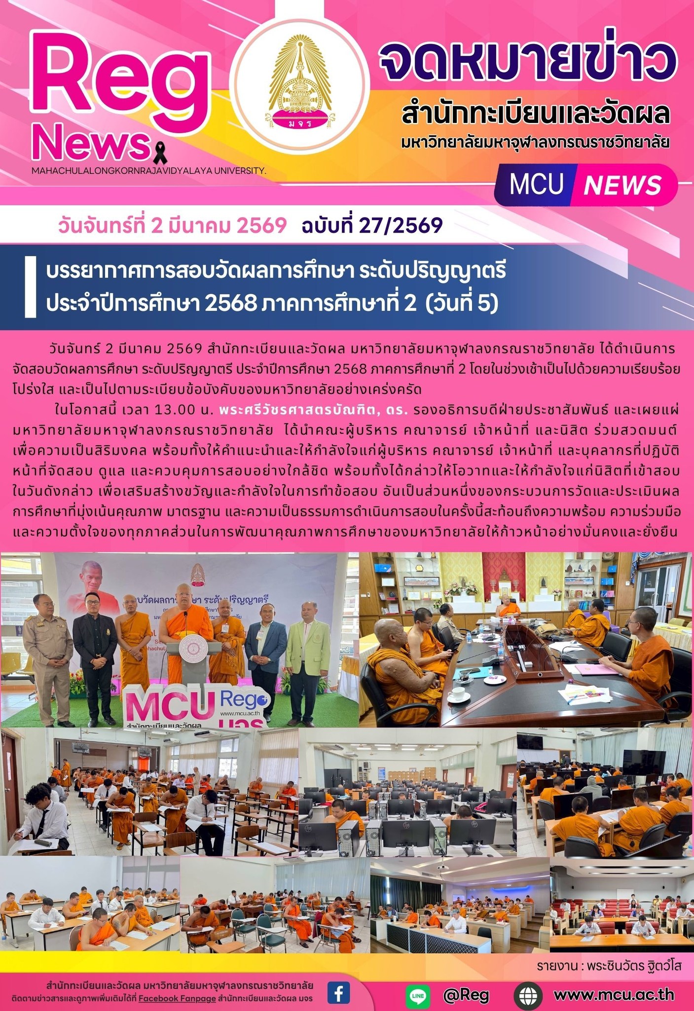 มหาวิทยาลัยมหาจุฬาลงกรณราชวิทยาลัย โดยสำนักทะเบียนและวัดผล ได้ดำเนินการจัดสอบวัดผลการศึกษา ระดับปริญญาตรี ประจำปีการศึกษา 2568 ภาคการศึกษาที่ 2