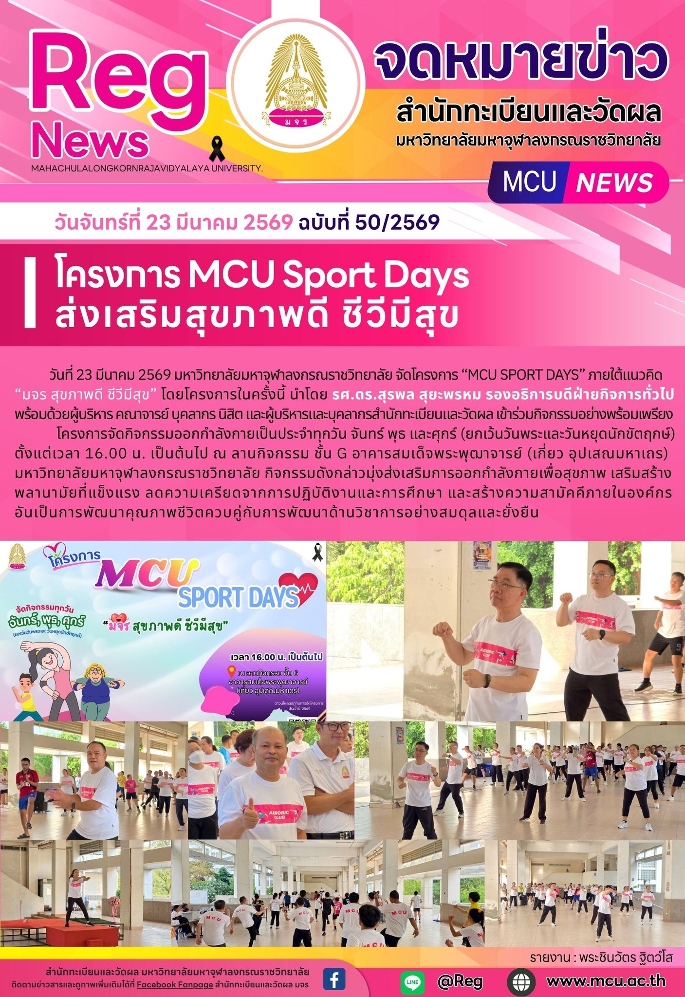 āđāļĄāļ·āđāļāļ§āļąāļāļāļĩāđ āđāđ āļĄāļĩāļāļēāļāļĄ āļ.āļĻ. āđāđāđāđ āļĄāļŦāļēāļ§āļīāļāļĒāļēāļĨāļąāļĒāļĄāļŦāļēāļāļļāļŽāļēāļĨāļāļāļĢāļāļĢāļēāļāļ§āļīāļāļĒāļēāļĨāļąāļĒ (āļĄāļāļĢ) āđāļāđāļāļąāļāļāļīāļāļāļĢāļĢāļĄāļ āļēāļĒāđāļāđāđāļāļĢāļāļāļēāļĢ âMCU SPORT DAYSâ āļāđāļ§āļĒāđāļāļ§āļāļīāļāļŦāļĨāļąāļ âāļĄāļāļĢ āļŠāļļāļāļ āļēāļāļāļĩ āļāļĩāļ§āļĩāļĄāļĩāļŠāļļāļâ āđāļāļ·āđāļāļŠāđāļāđāļŠāļĢāļīāļĄāļāļēāļĢāļāļđāđāļĨāļŠāļļāļāļ āļēāļāđāļāļīāļāļĢāļļāļāđāļŦāđāļāļąāļāļāļļāļāļĨāļēāļāļĢāđāļĨāļ°āļāļīāļŠāļīāļ