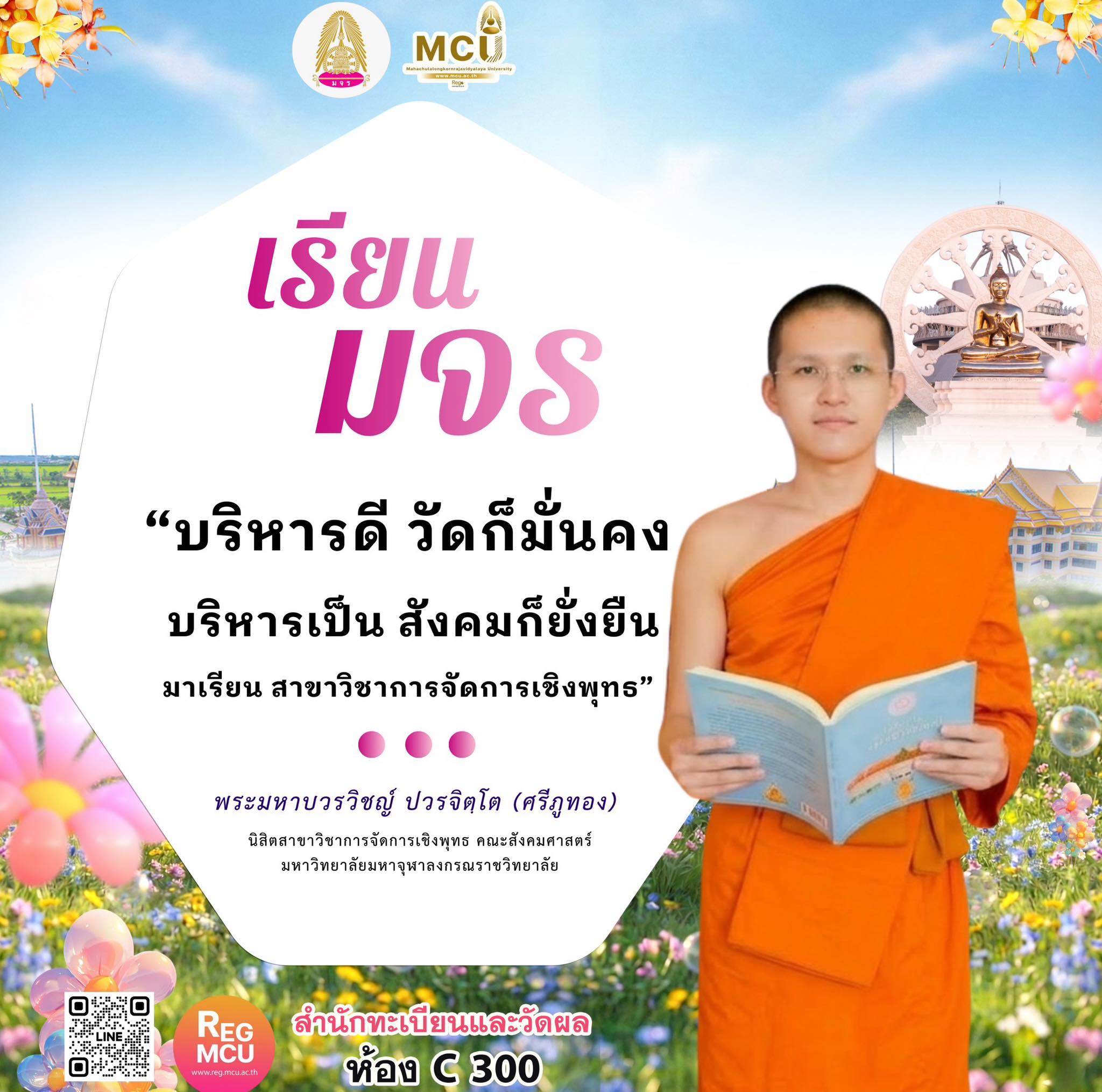 “บริหารดี วัดก็มั่นคง บริหารเป็น สังคมก็ยั่งยืน มาเรียน สาขาวิชาการจัดการเชิงพุทธ”