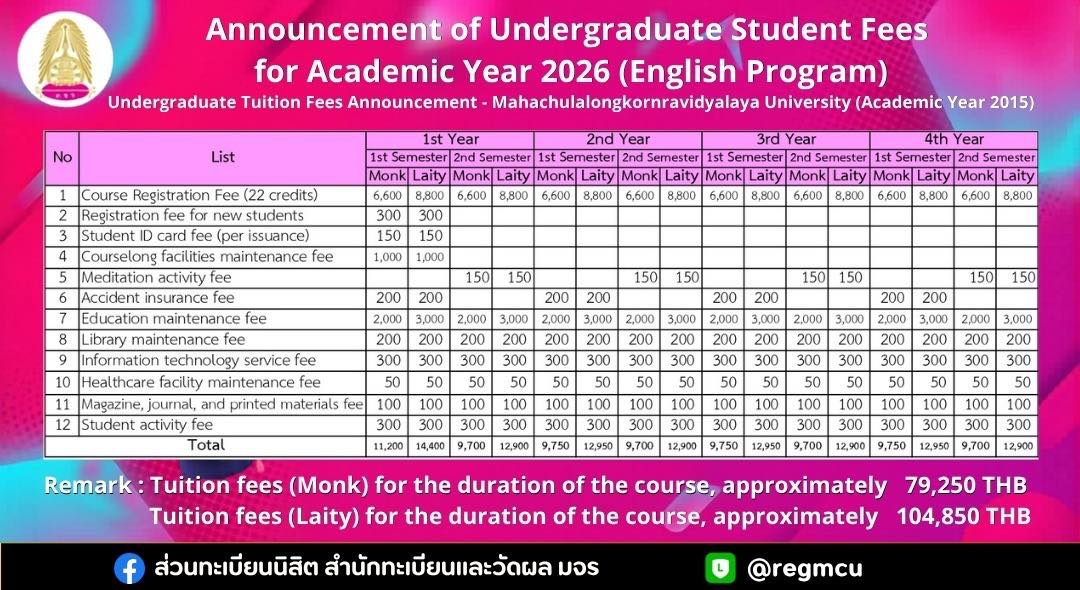 Announcement of Undergraduate Tuition Fees English Program, Academic Year 2026