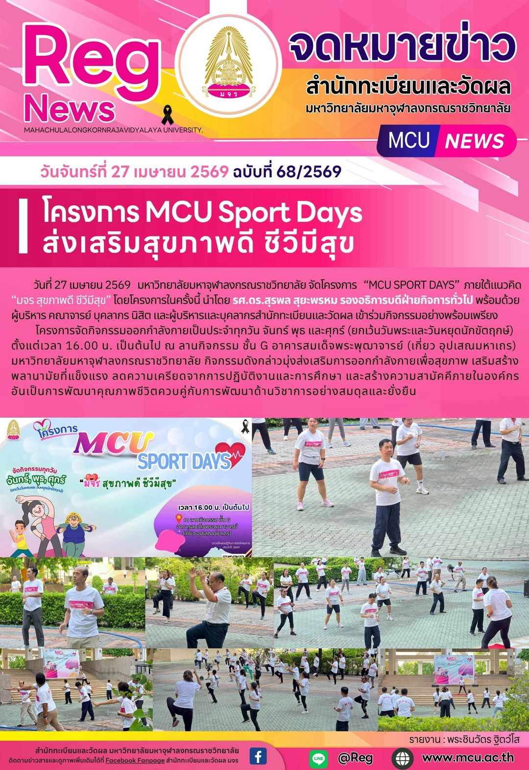 โครงการ MCU SPORT DAYS ส่งเสริมสุขภาพดี ชีวีมีสุข วันที่ 27 เมษายน 2569